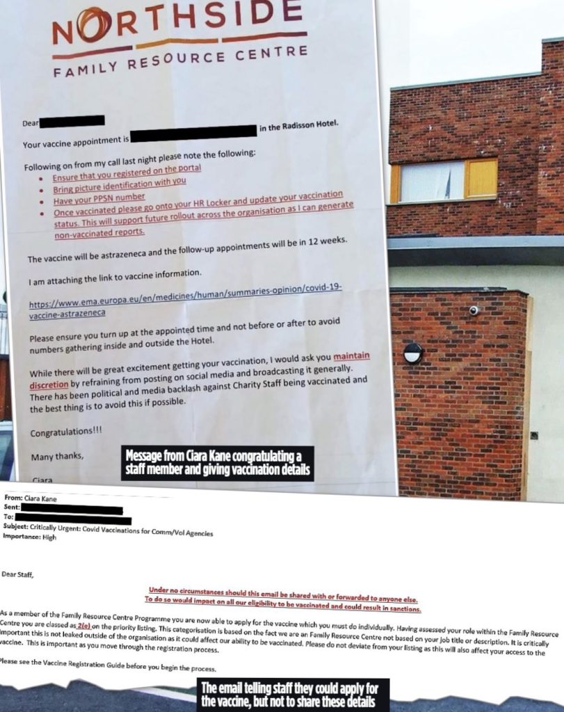 The CEO of the Northside Family Resource Centre, Ciara Kane, insists she and her staff were entitled to be vaccinated because they were going into people’s homes.